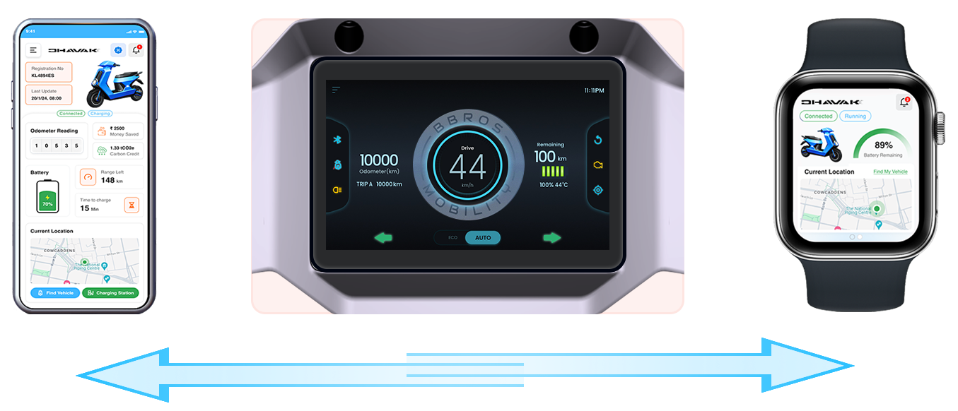 Your vehicle keeps you updated (4G connectivity) via the mobile phone app and smart watch app.